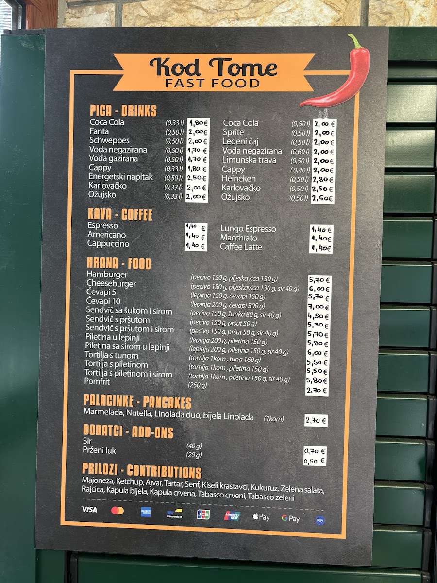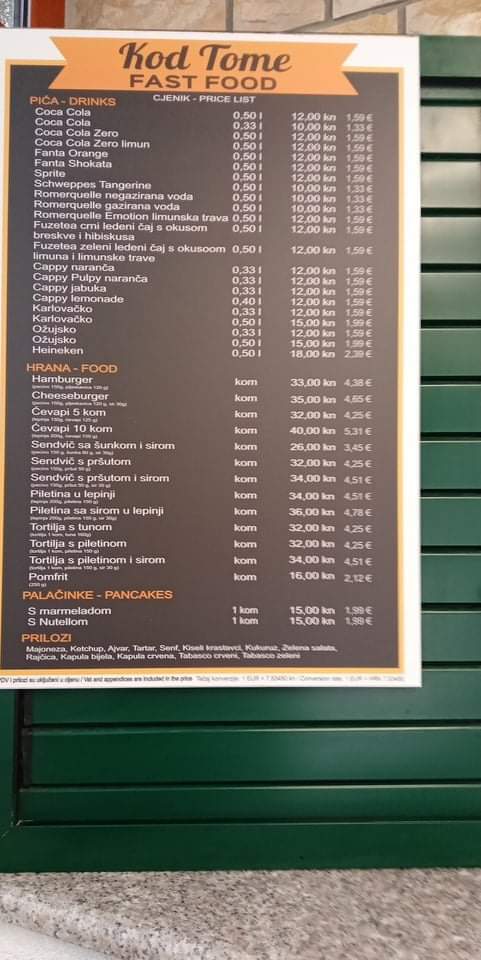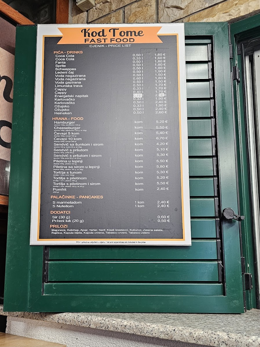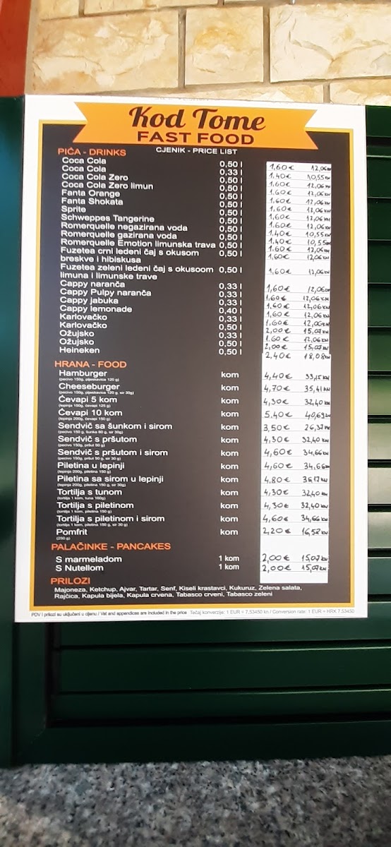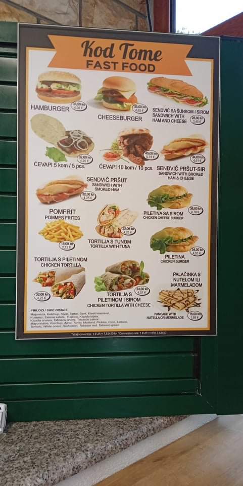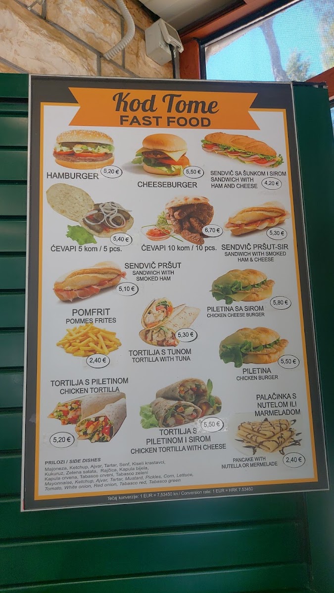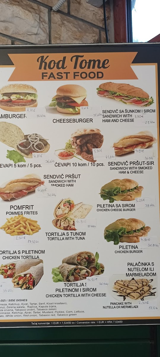 Introducing Fast food Kod Tome, a culinary gem located at Ul. bana Josipa Jelačića 1, in the heart of Šibenik, Croatia. This vibrant eatery specializes in hearty fast food, boasting a menu that features delectable dishes like the beloved cevapi and mouthwatering cheeseburgers. Customers rave about the generous portion sizes and affordable prices, making it a popular spot for a quick yet satisfying meal.